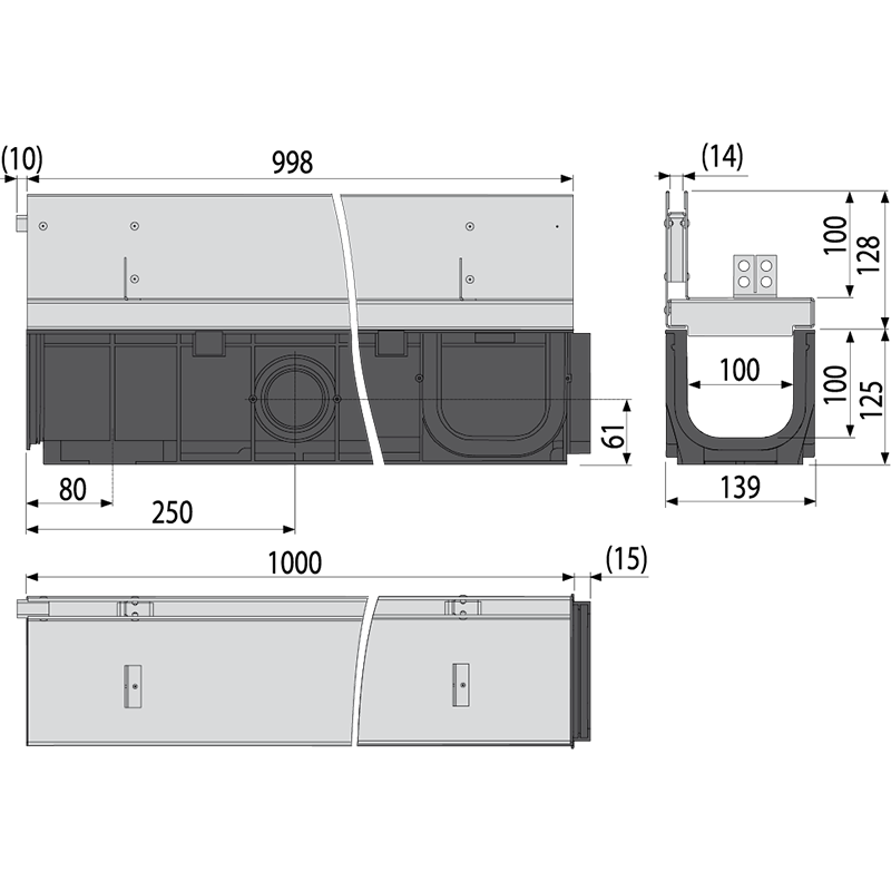 • Материал желоба: полипропилен обогащенный тальком, устойчив к механическим, химическим и термическим повреждениям