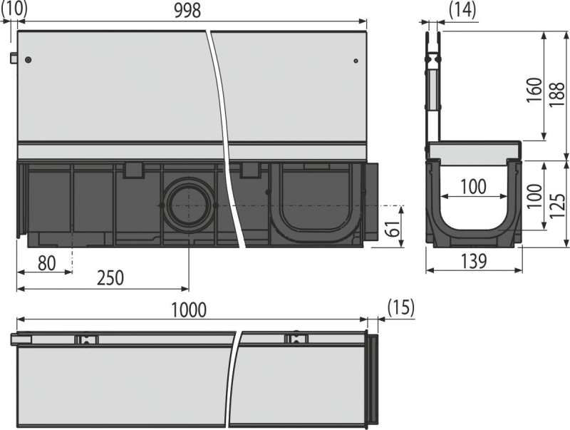 • Материал желоба: полипропилен обогащенный тальком, устойчив к механическим, химическим и термическим повреждениям