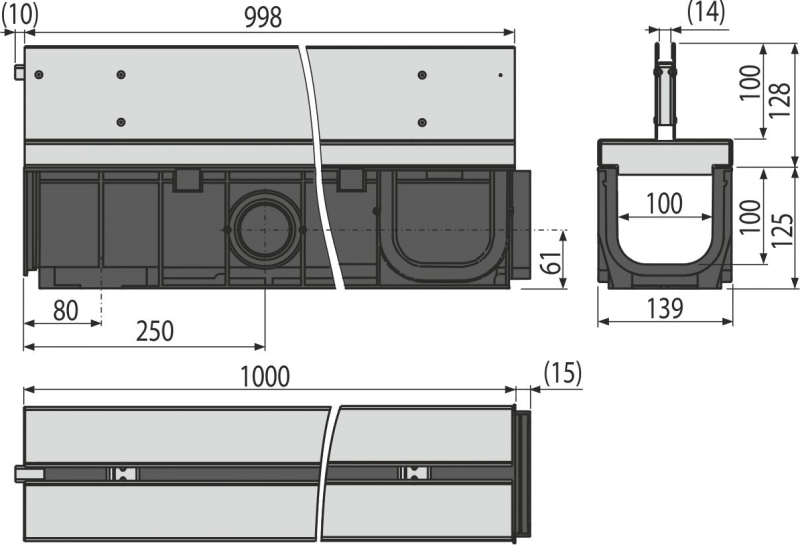 - Материал желоба: полипропилен обогащенный тальком, устойчив к механическим, химическим и термическим повреждениям