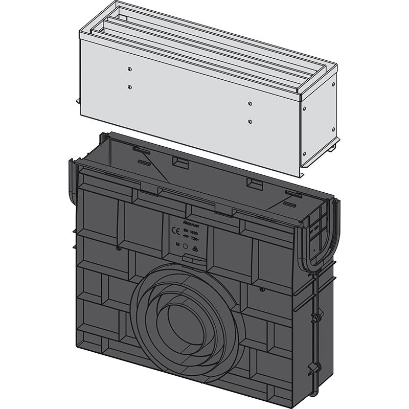 Пескоуловитель для дренажного канала с щелевой симметричной сервисной надставкой 160 мм, нержавеющая сталь