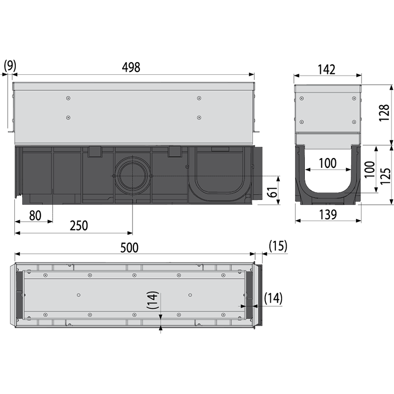 - Материал желоба: полипропилен обогащенный тальком, устойчив к механическим, химическим и термическим повреждениям