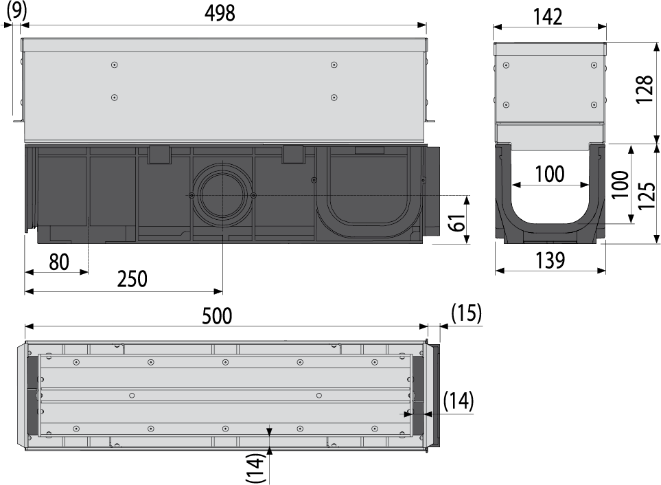 • Материал желоба: полипропилен обогащенный тальком, устойчив к механическим, химическим и термическим повреждениям