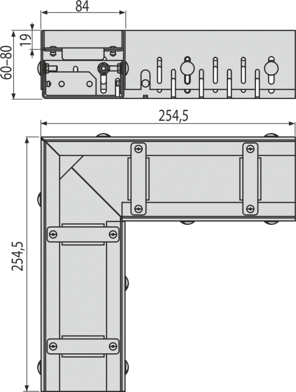 - Тело желоба регулируется по высоте 60–80 мм