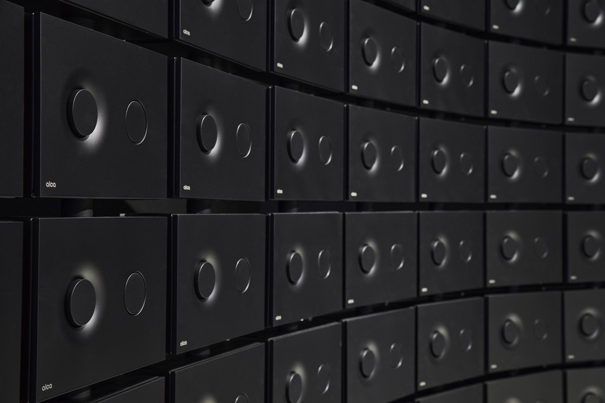 Здесь желающие могут полюбоваться ими не только глазами, но и руками. Стена, состоящая из 680 вращающихся кнопок, сразу привлекает внимание своим минималистичным внешним видом и интерактивностью: гости могут использовать ее, чтобы оставить личное сообщение, создать фигуры или просто расслабиться, переворачивая плитки. «Тема Designblok в этом году — дорога. Волнистая форма стены напоминает морскую волну, которая на протяжении веков была символом путешествий», — объясняет Петр Нейман, руководитель отдела маркетинга Alca, отвечавший за проект.