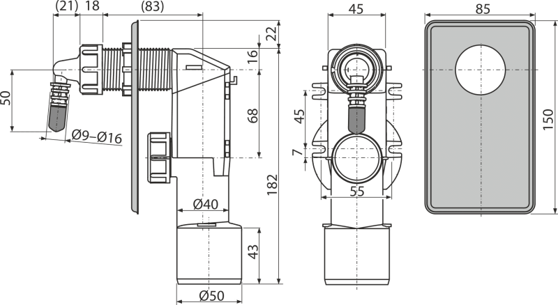 - Корпус сифона с комбинированным гидрозатвором