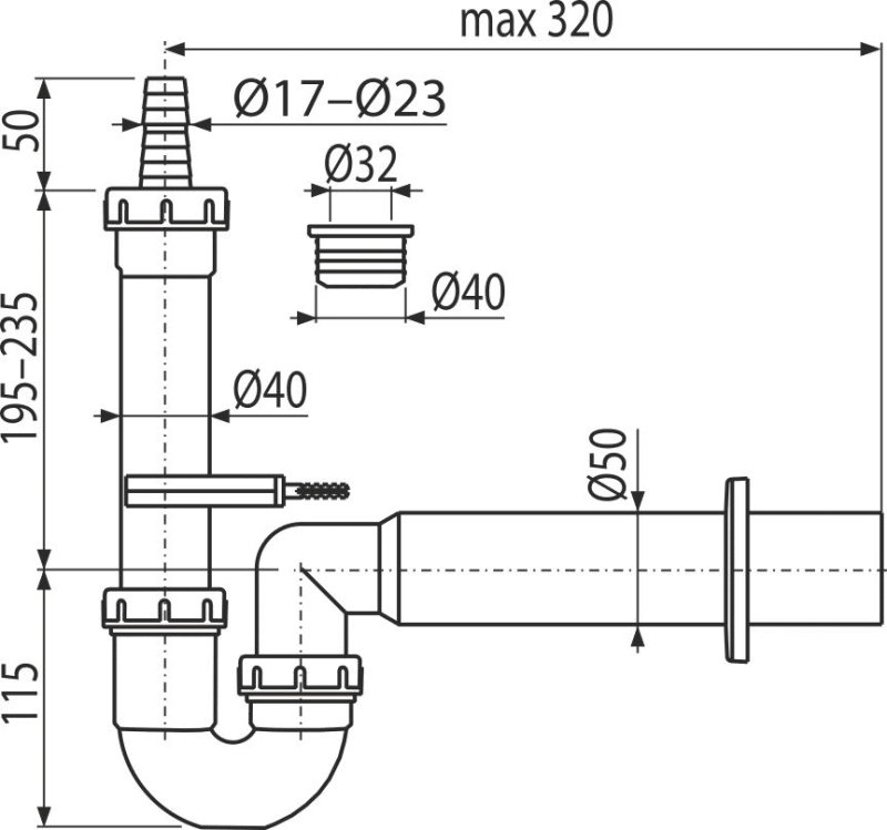 - Подключение к канализации с помощью трубки Ø50 мм