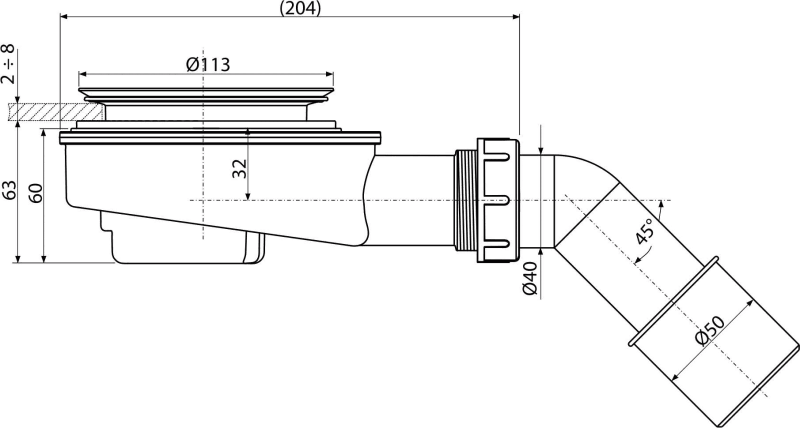 - Для душевых поддонов со сливным отверстием Ø90 мм