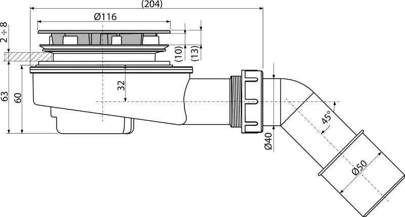 - Для душевых поддонов со сливным отверстием Ø90 мм