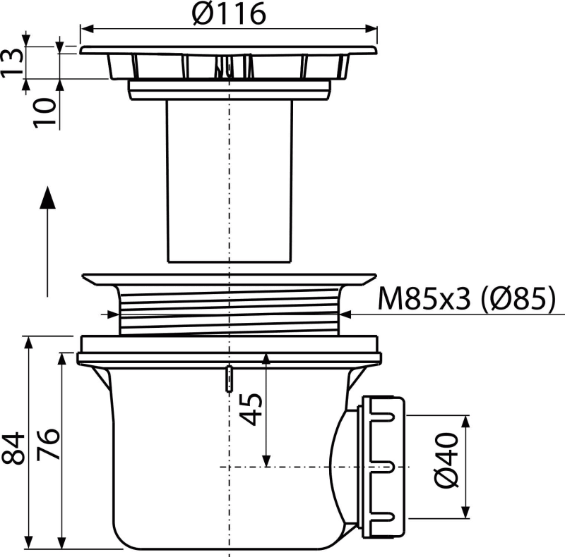 - Для душевых поддонов со сливным отверстием Ø90 мм