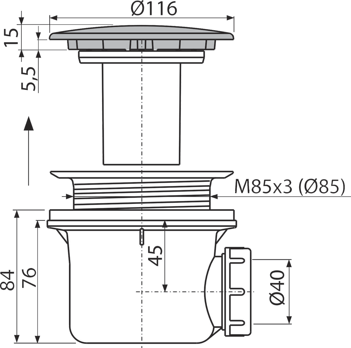 - Для душевых поддонов со сливным отверстием Ø90 мм