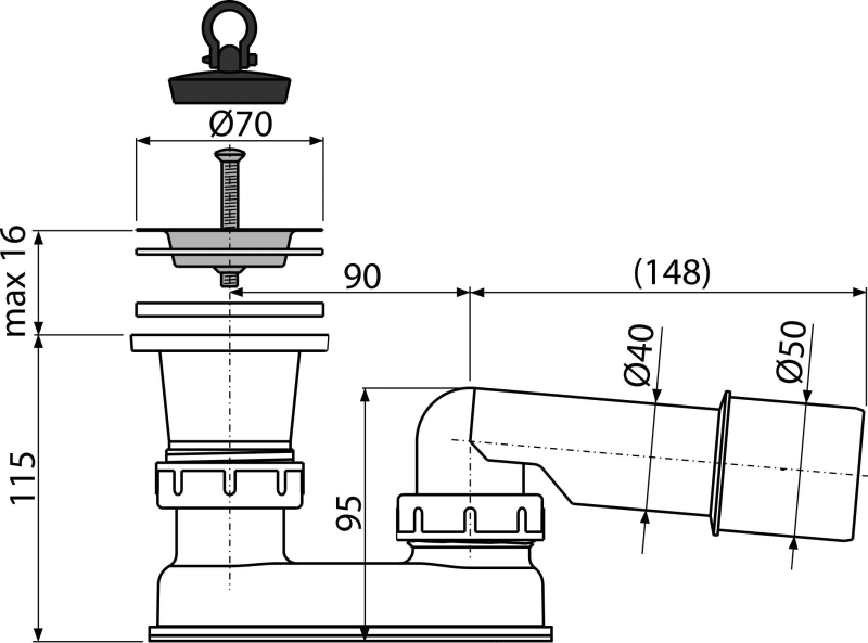- Для душевых поддонов со сливным отверстием Ø50 мм