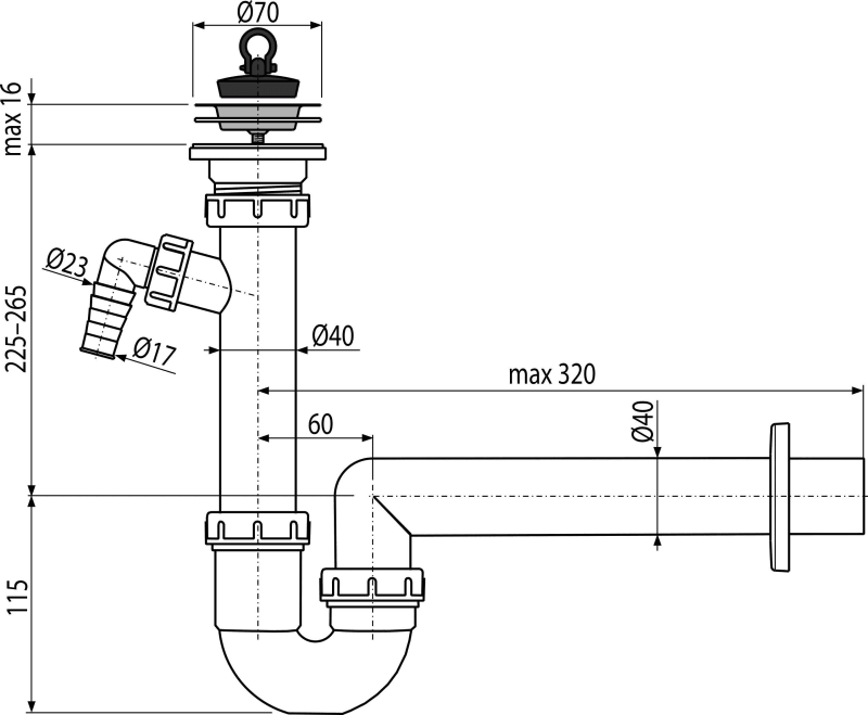 Сифон трубчатый c решеткой из нержавеющей стали DN70 и штуцером
