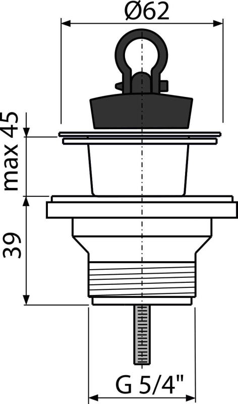 Донный клапан сифона для умывальника 5/4" с пластмассовой peшeткой DN63