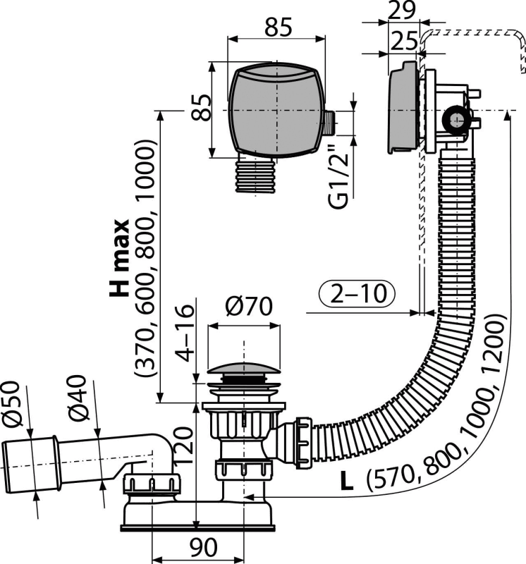 | S1425A-ND | Bathtub outlet CLICK/CLACK 6/4" |