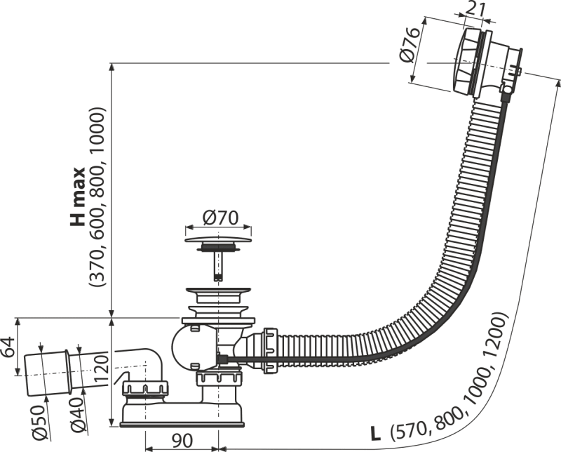 - Гидрозатвор сифона из полипропилена, сваренный ультразвуковым методом, устойчив к термическим и химическим воздействиям