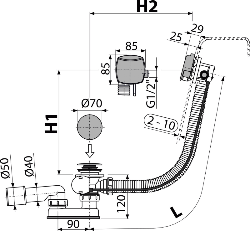 - Длина сифона для ванны 57 см